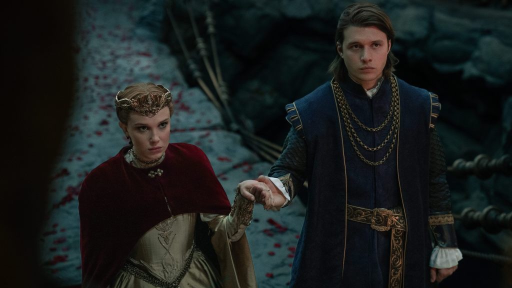 Vladimir Propp highlighted 7(8) character functions. Fresnadillo doesn’t completely follow these but certainly uses them to help create a textbook story. The first Character function is the Hero. The Hero in Damsel is certainly Elodie, she is thrust into a dangerous situation, then must survive, escape, and ultimately confront both the dragon and the corrupt royal family that sacrificed her. Next is the Villain, who seeks to destroy the Hero. In this case, the villain could be seen as both The Aurean royal family and the Dragon. The Aurean family/Queen Isabelle serve as the villains as they orchestrate a cruel ritual, betray Elodie, and perpetuate a sacrificial system to maintain power. The dragon also initially functions like a villain: it’s the terrifying force to be feared, the “monster” to be overcome or reasoned with. Then there is the false hero who seems to help the hero but is actually a crucial factor to the fall of the hero. Prince Henry could be seen as a kind of “false hero” (or at least a betrayer). He is outwardly the charming prince, but complicit in the ritual and wields hidden cruelty. He’s not a genuine saviour. The next few are the helper, dispatcher and donor, these are the people who contribute to the success of the hero. You could argue that Queen Isabelle functions somewhat like a dispatcher: she sends (or lures) Elodie into this sacrifice ritual under false pretences. However, Lord Bayford (Elodie’s father) might also play a dispatching role by encouraging/facilitating the marriage, though his motivation is complicated (his duty to his people against the love for his daughter.) The glowing slugs/worms in the cave act like a donor, they heal Elodie’s burns, enabling her to continue her journey. Later, the dragon itself becomes a helper, after Elodie unmasks the truth, she heals the dragon and gains its trust, turning a classic “monster” into an ally. Finally, there is the princess and the princess’ father, which logically would be Elodie and her father, Lord Bayford. Elodie is the “princess” trope, but flipped: she’s not just a prize to be won, she’s sacrificed, then becomes active, resourceful, and saves others (including herself and her sister (perhaps suggesting her sister, Floria, is the actual “princess”)). And Lord Bayford as the Princess’ father, he organises the marriage of Elodie and Prince Henry. These last two are extremely conventional as the princess and the princess’ father are actually the princess and her father.